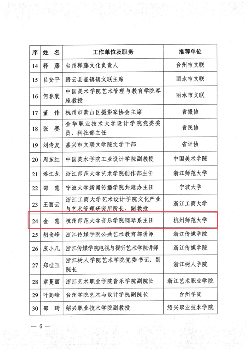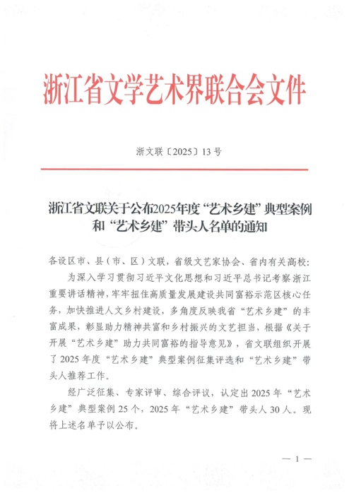 日前,浙江省文联公布了 2025 年度“艺术乡建”典型案例和“艺术乡建”带头人名单,我校音乐学院金慧教授获评2025年度浙江省“艺术乡建”带头人。